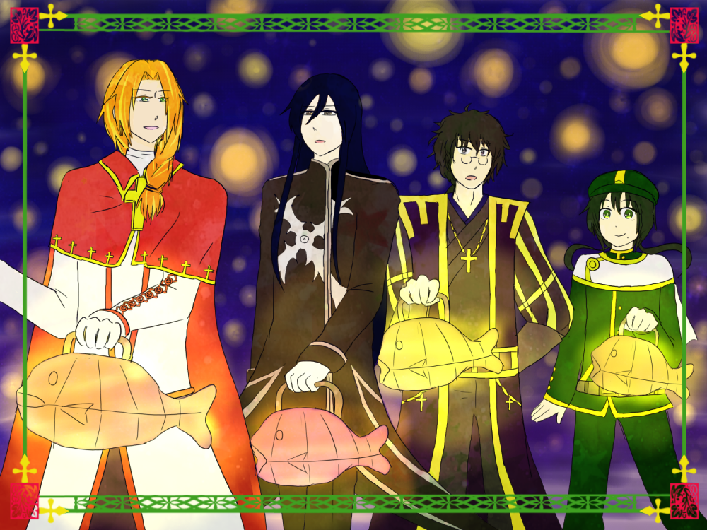 といった記述が頭に残っていて、気付いたらうちのキリシタン連中で描いてました(白目)